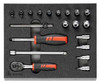 Precistion Hand Tool 1/4 socket set in two-color moulded PE rigid foam inlays.