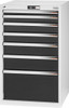 Cabinet body and drawer body RAL 7035 light grey, drawer fronts RAL 7016 anthracite, powder-coated.