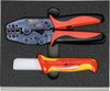 This Knipex/Holex Wire Stripping Set of 2 Tools in Rigid Foam Inlay has one Knipex Cable Knife and one Holex Crimping Tool, German wire stripping tools stored in a foam tool box organizer for use with Garant Gridline series or workshop setting.