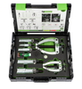 The 10-piece ball bearing extractor set 25-B is used for extracting internal bearings, bearing outer rings and bushes in trade, industry and workshops. The set includes internal extractors and counter stays. The multi-shell design of the internal extractors with their extra large gripping edges allows internal parts to be safely extracted and, with the counter stays, internal parts can be safely removed.