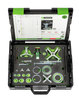 The 38-part ball bearing puller set "PULLPO" K-70-C is used for the completely non-destructive removal of deep groove ball bearings without removing the shaft in trade, industry and workshops. Even without the possibility of support, the PULLPO can safely remove bearings that would otherwise be impossible to grip, thus ensuring that the affected parts can be reused. The PULLPO not only impresses with its innovative design, but also with its ease of use, and the specially developed Pulling hooks enable a reliable hold during the removal process and higher removal forces. In addition to the PULLPO, the set also includes suitable hooks and rings for appropriate use.
