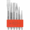 Flat and cross-cut chisels for metal, and taper pin punches and centre punches with octagonal shanks, through hardened; chisels can be reground many times. Head specially annealed to prevent splintering.