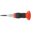Sturdy knurled shank with hardened, replaceable point and ergonomic end piece for high user comfort. The impact can be set as required by turning the end piece.